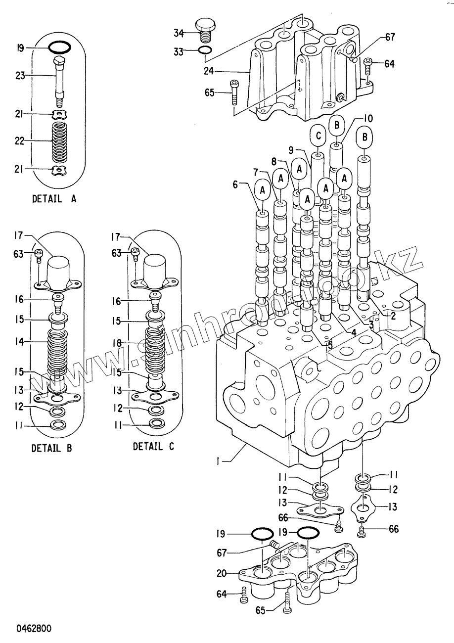 Каталог запасных частей к технике: Hitachi Компоненты EX-60-2. VALVE CONTROL (1/3) 4305191