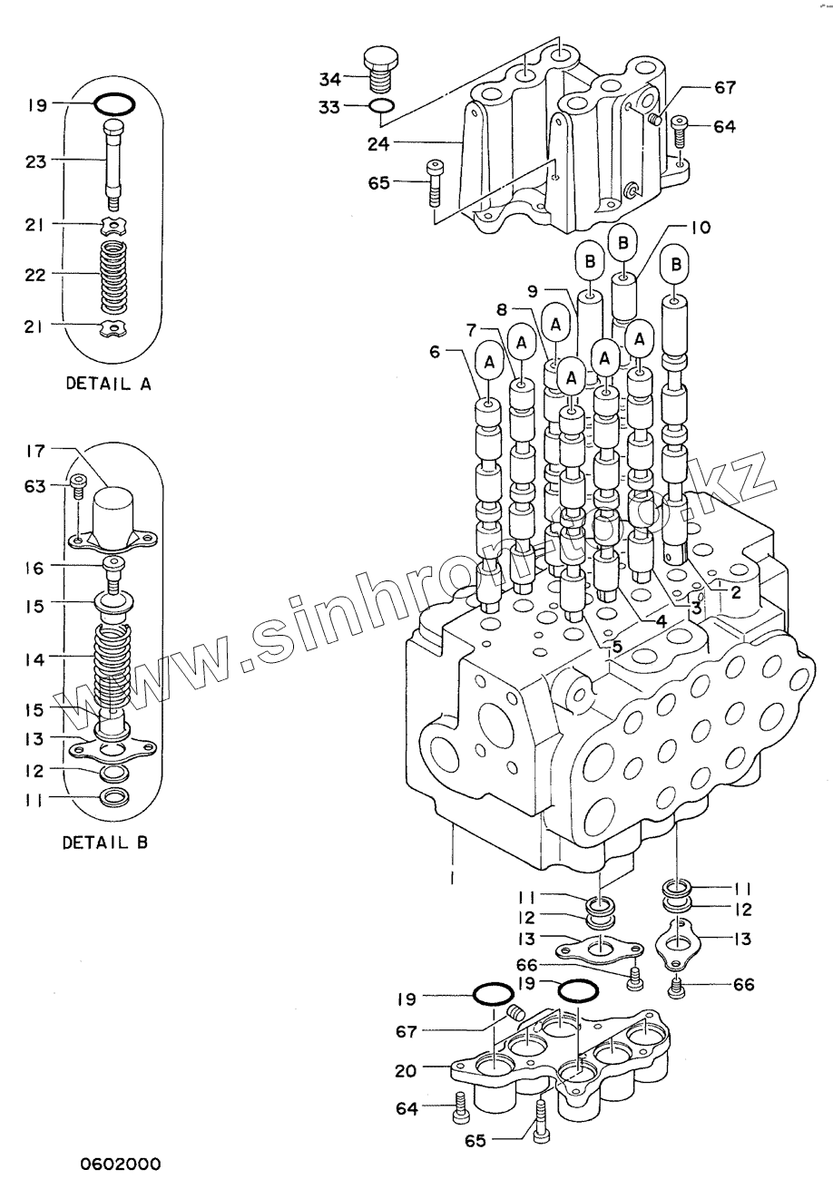 Каталог запасных частей к технике: Hitachi Компоненты EX-60-2. VALVE CONTROL (1/3) 4325469