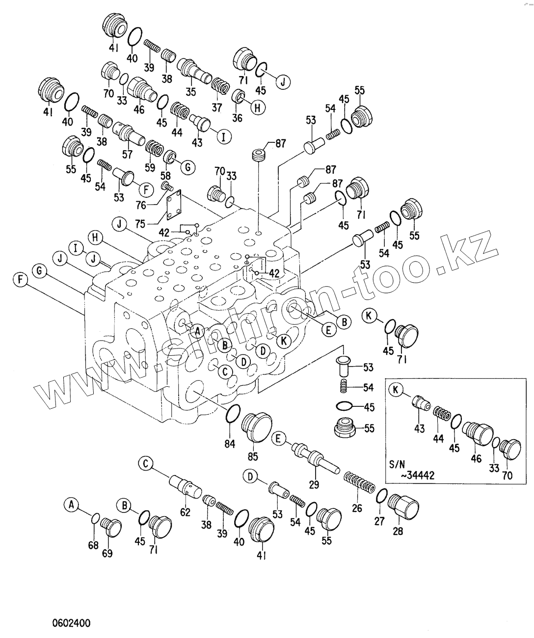 Каталог запасных частей к технике: Hitachi Компоненты EX-60-2. VALVE CONTROL (2/3) 4325470