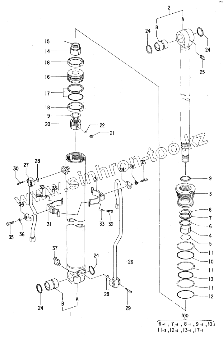 Каталог запасных частей к технике: Hitachi Компоненты EX-60-3. BOOM CYLINDER
