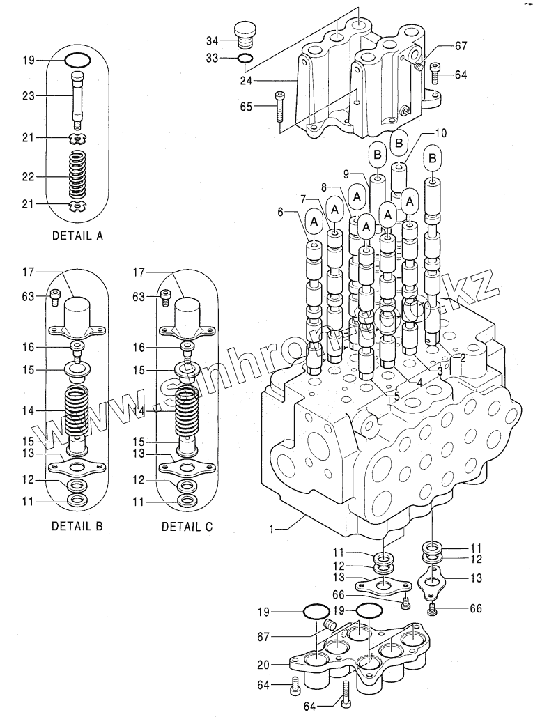 Каталог запасных частей к технике: Hitachi Компоненты EX-60-3. CONTROL VALVE (1/3)
