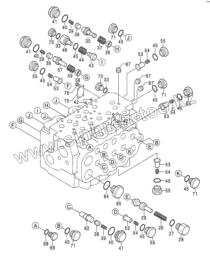 Каталог запасных частей к технике: Hitachi Компоненты EX-60-3. CONTROL VALVE (2/3)