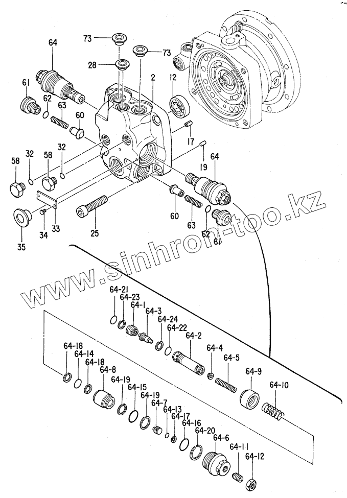 Каталог запасных частей к технике: Hitachi Компоненты EX-60-3. OIL MOTOR (1)