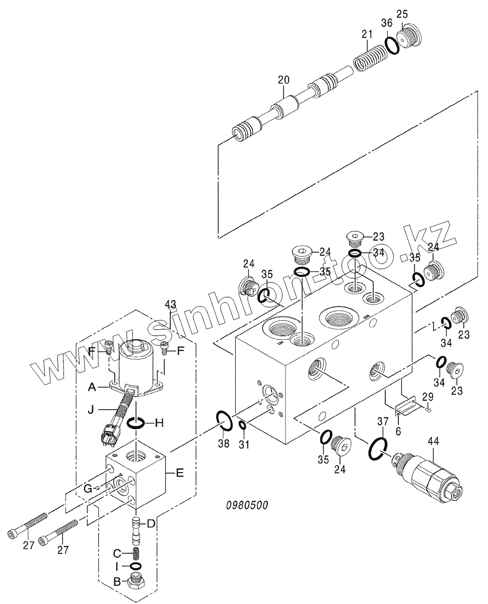 Каталог запасных частей к технике: Hitachi Компоненты ZAXIS 450, 470, 500, 520. VALVE, SOLENOID