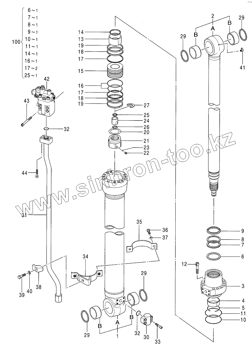 Каталог запасных частей к технике: Hitachi Компоненты ZX-110. CYL., ARM [WITH HOLDING VALVE]