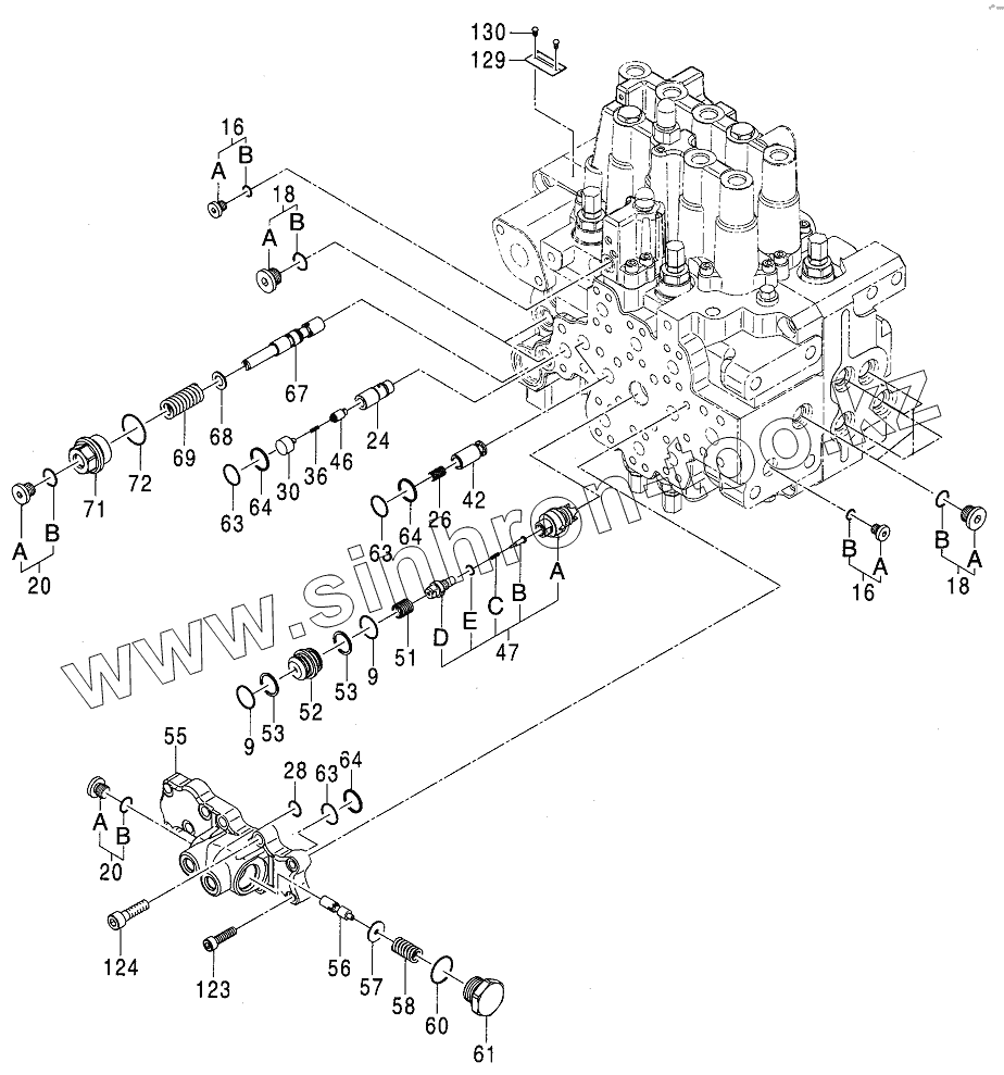 Каталог запасных частей к технике: Hitachi Компоненты ZX-110. VALVE, CONTROL (1/8)