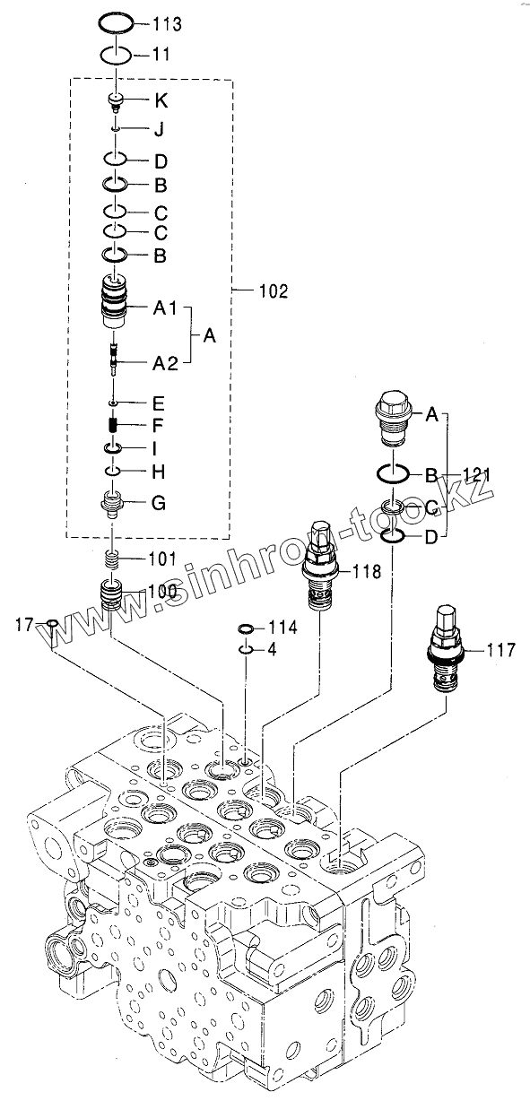 Каталог запасных частей к технике: Hitachi Компоненты ZX-110. VALVE, CONTROL (5/8)