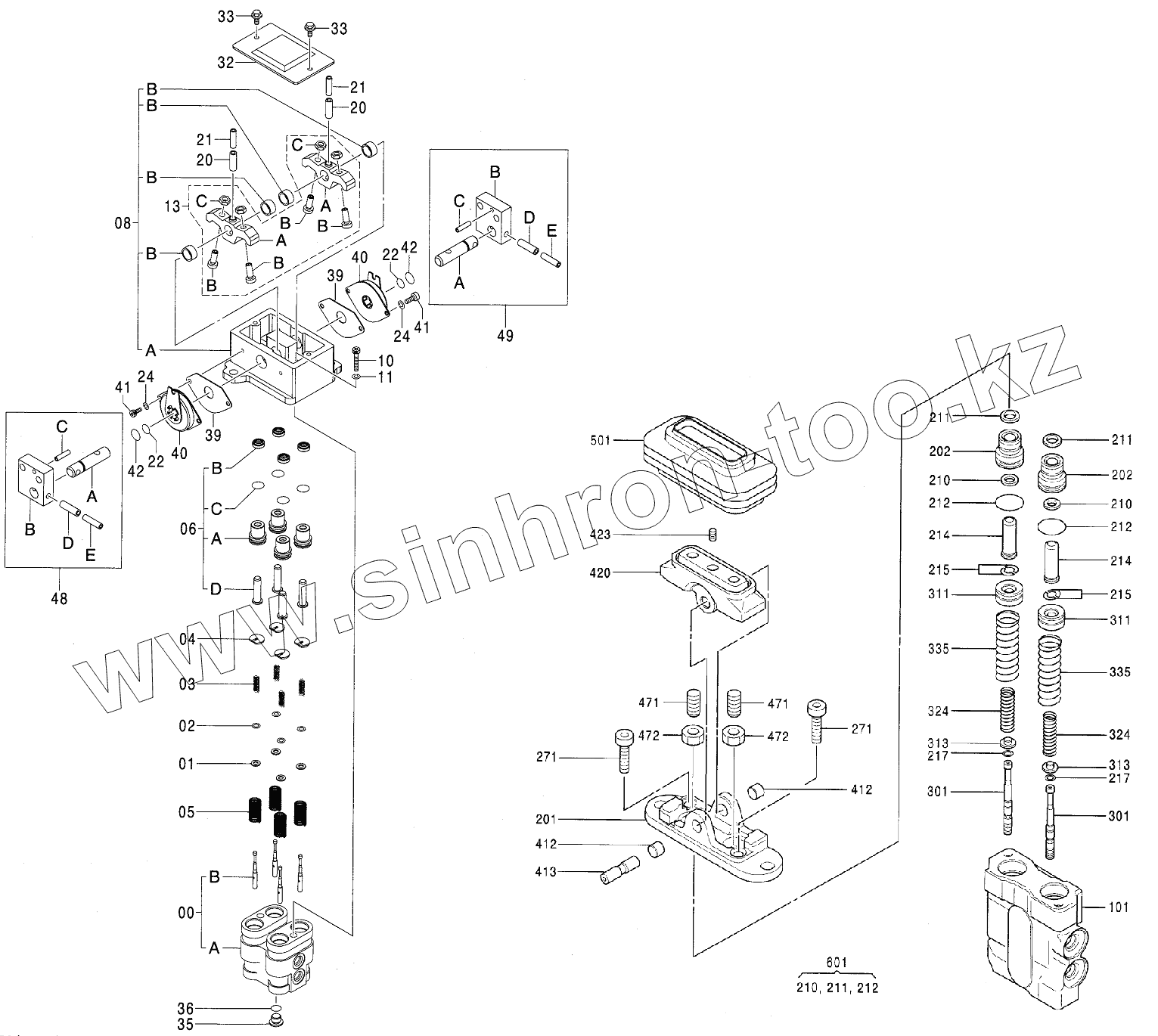 Каталог запасных частей к технике: Hitachi Компоненты ZX-110. VALVE, PILOT (TRAVEL & BLADE)
