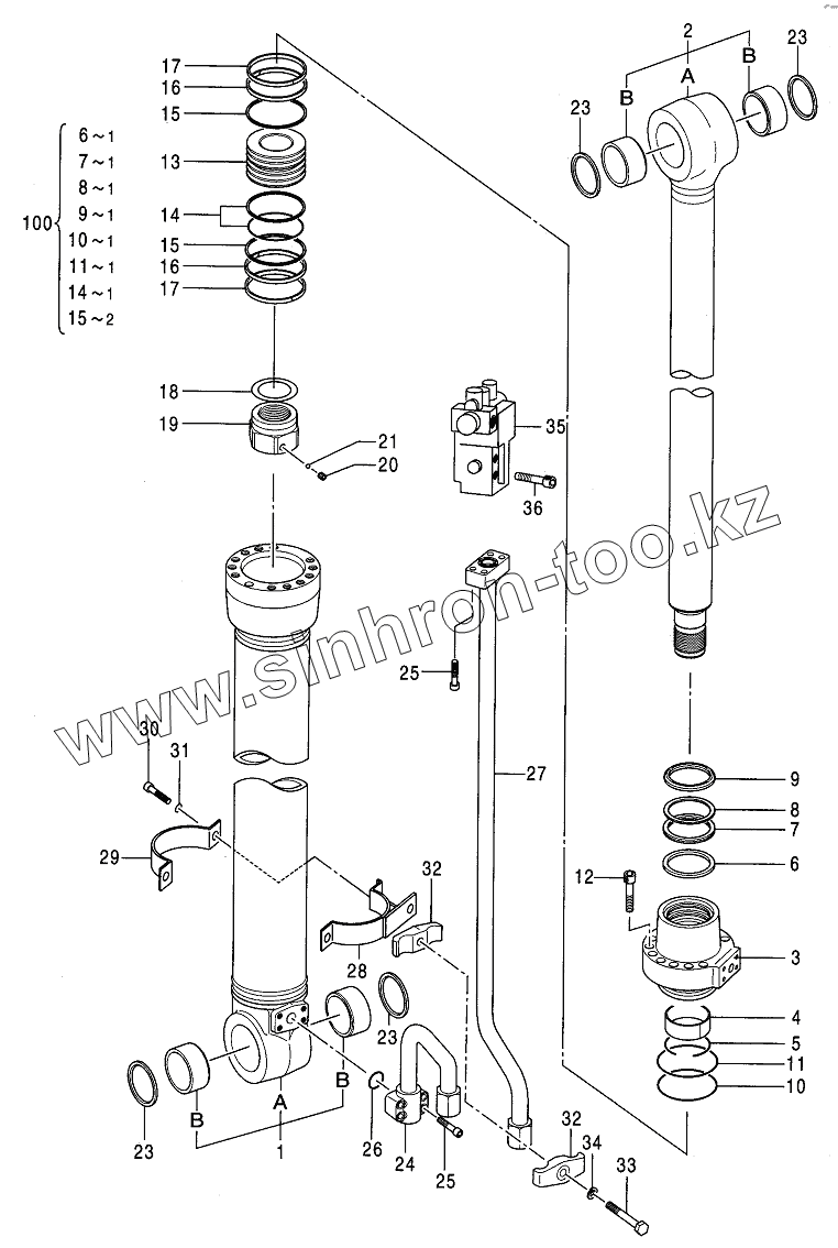 Каталог запасных частей к технике: Hitachi Компоненты ZX-120 (130). CYL , POSITIONING (WITE HOLDING VALVE)