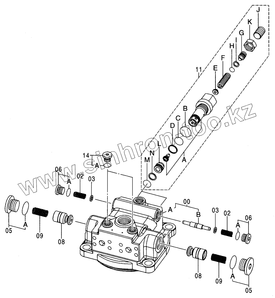Каталог запасных частей к технике: Hitachi Компоненты ZX-120 (130). VALVE, BRAKE