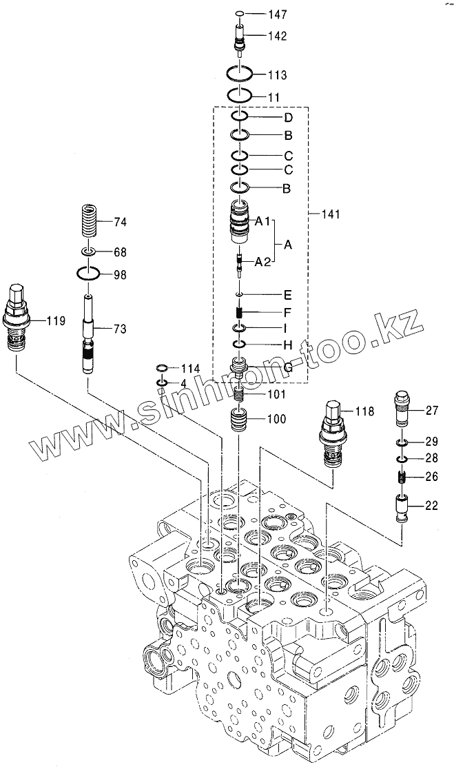 Каталог запасных частей к технике: Hitachi Компоненты ZX-120 (130). VALVE, CONTROL (7/8)
