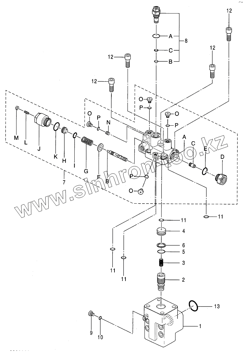 Каталог запасных частей к технике: Hitachi Компоненты ZX-120 (130). VALVE, HOLDING (ARM)