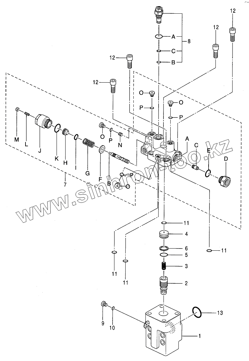 Каталог запасных частей к технике: Hitachi Компоненты ZX-120 (130). VALVE, HOLDING (POSITIONING)