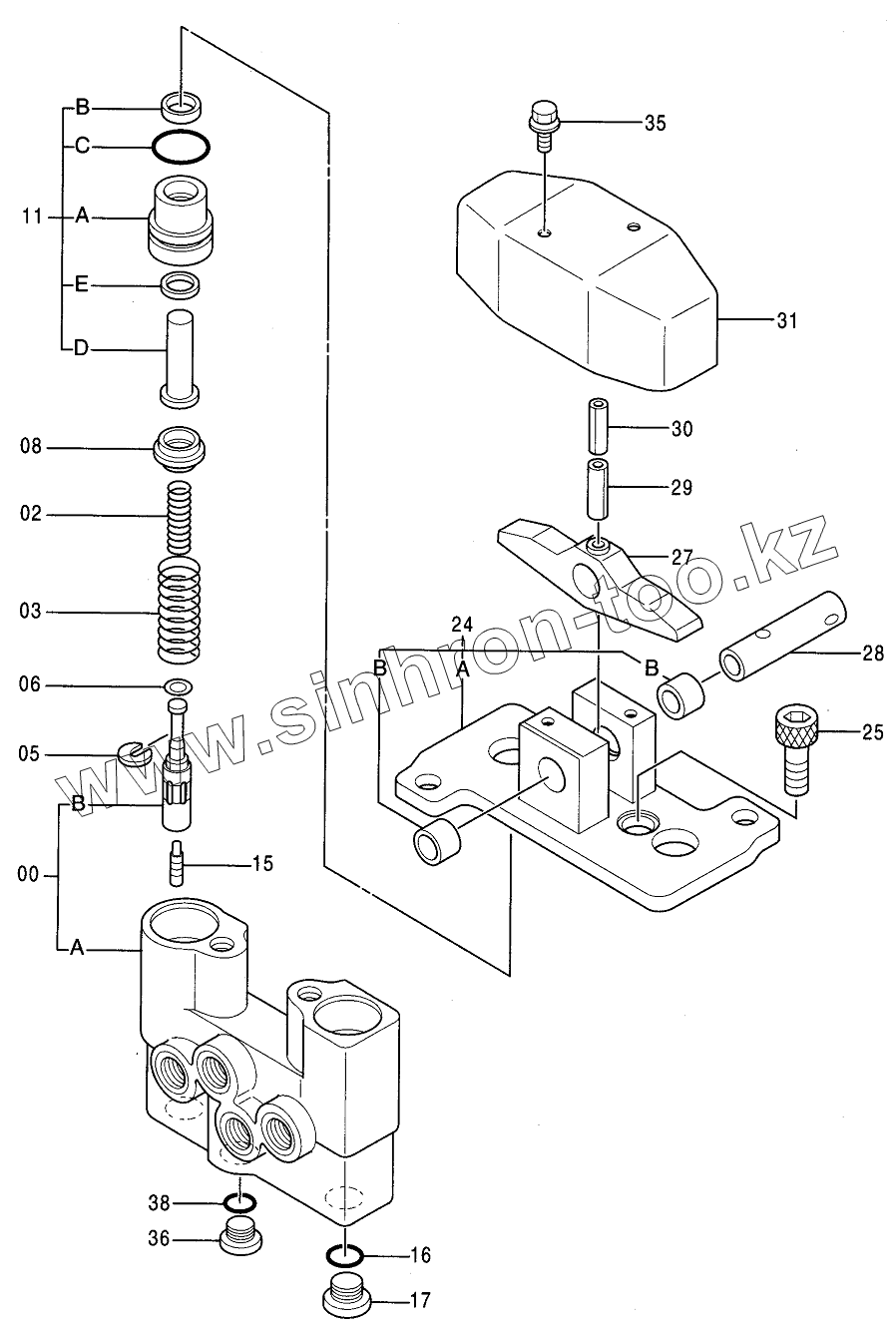 Каталог запасных частей к технике: Hitachi Компоненты ZX-120 (130). VALVE, PILOT