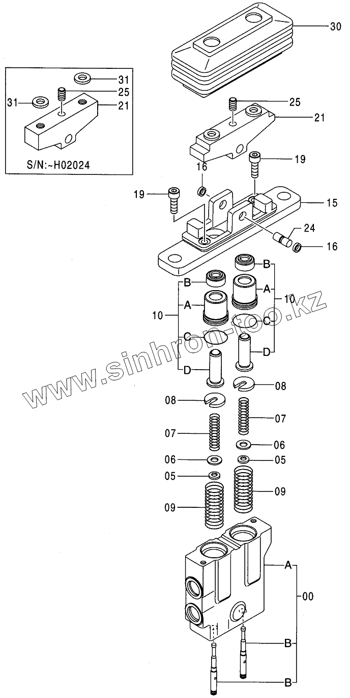 Каталог запасных частей к технике: Hitachi Компоненты ZX-120 (130). VALVE, PILOT