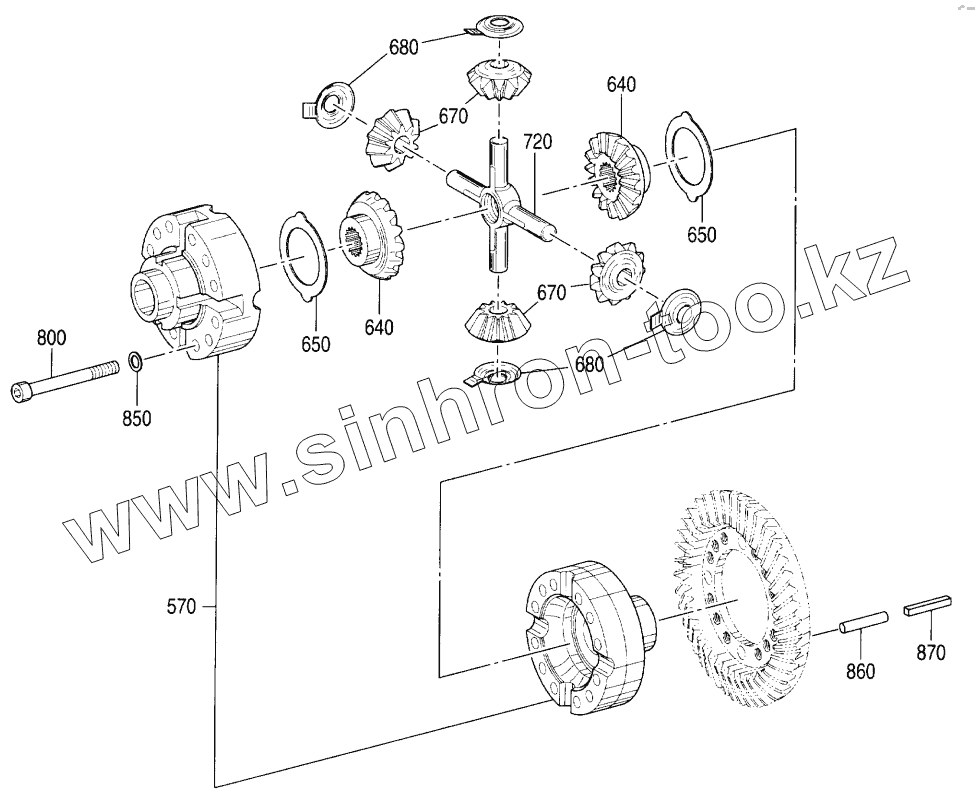 Каталог запасных частей к технике: Hitachi Компоненты ZX-160W. AXLE, FRONT (2)