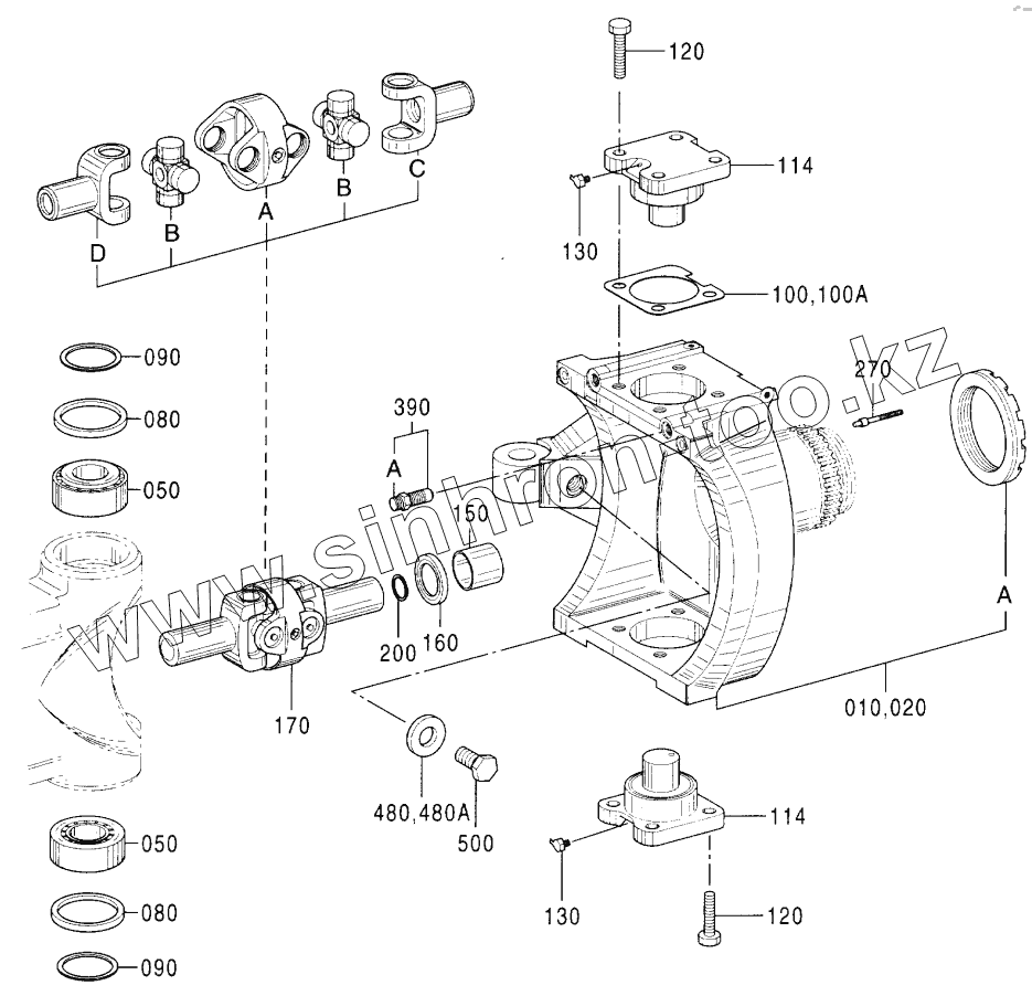 Каталог запасных частей к технике: Hitachi Компоненты ZX-160W. AXLE, FRONT (4)