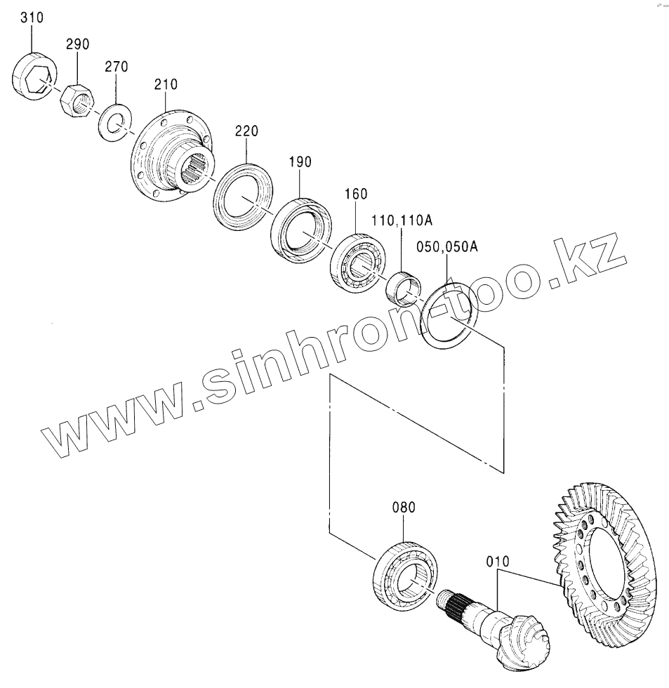 Каталог запасных частей к технике: Hitachi Компоненты ZX-160W. AXLE, REAR (1) (WIDE)