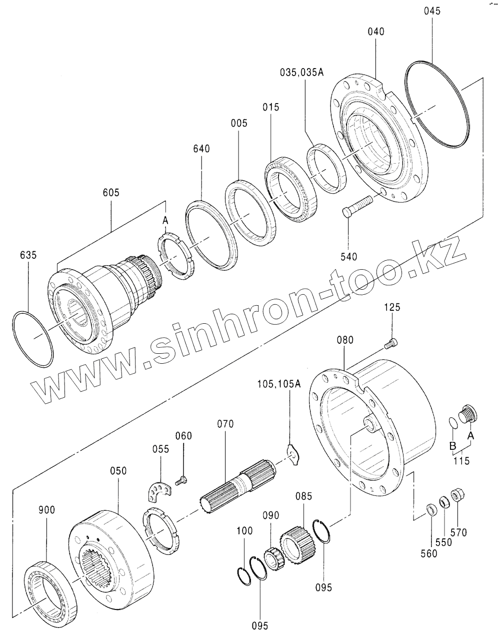 Каталог запасных частей к технике: Hitachi Компоненты ZX-160W. AXLE, REAR (4) (WIDE)