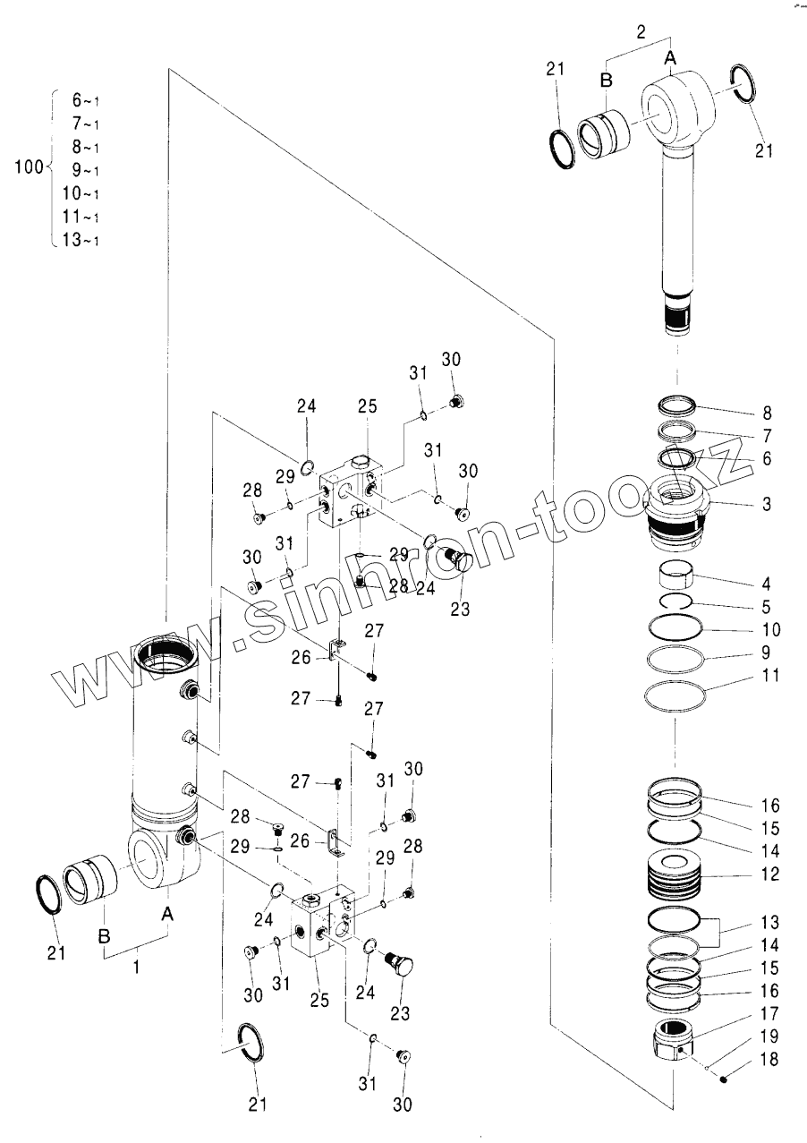 Каталог запасных частей к технике: Hitachi Компоненты ZX-160W. CYL., BLADE