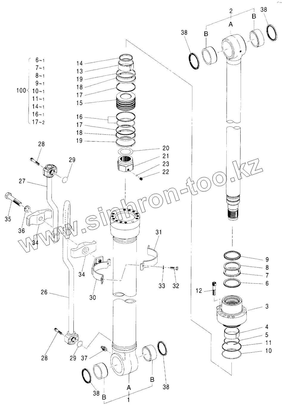 Каталог запасных частей к технике: Hitachi Компоненты ZX-160W. CYL., BOOM (L) (2P-B00M)