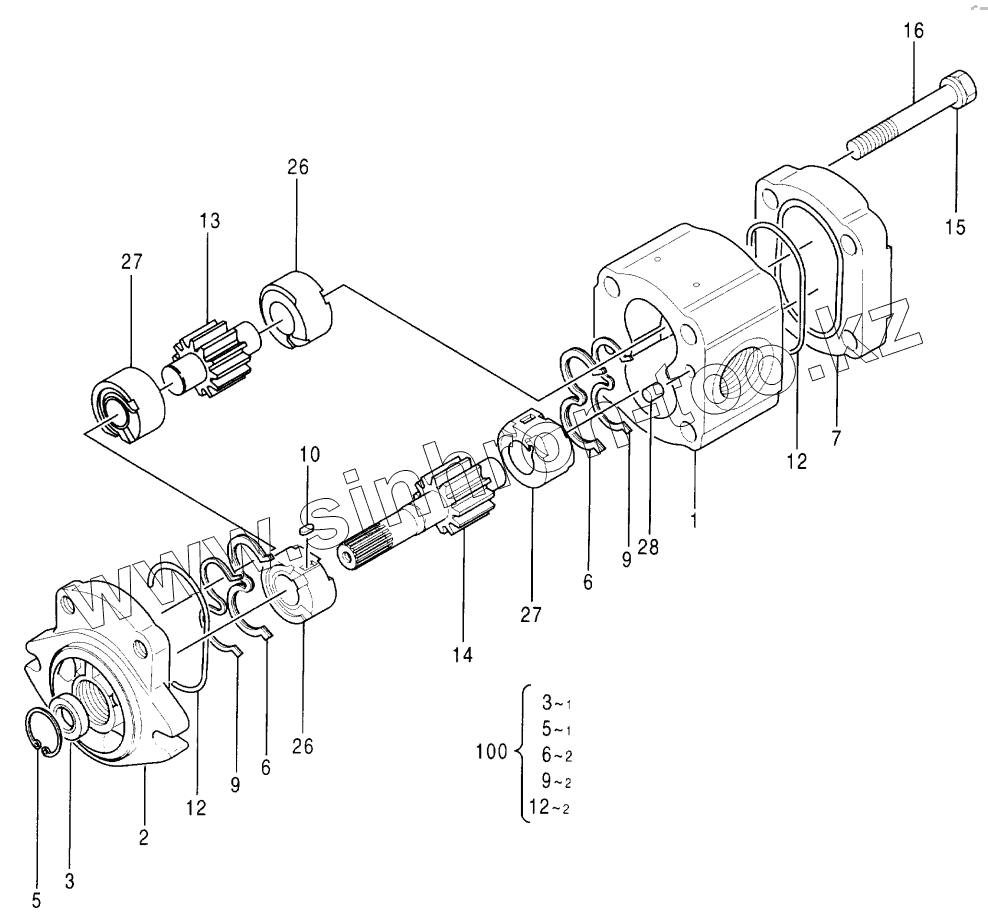 Каталог запасных частей к технике: Hitachi Компоненты ZX-160W. PUMP, GEAR