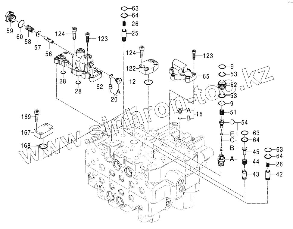 Каталог запасных частей к технике: Hitachi Компоненты ZX-160W. VALVE, CONTROL (2)