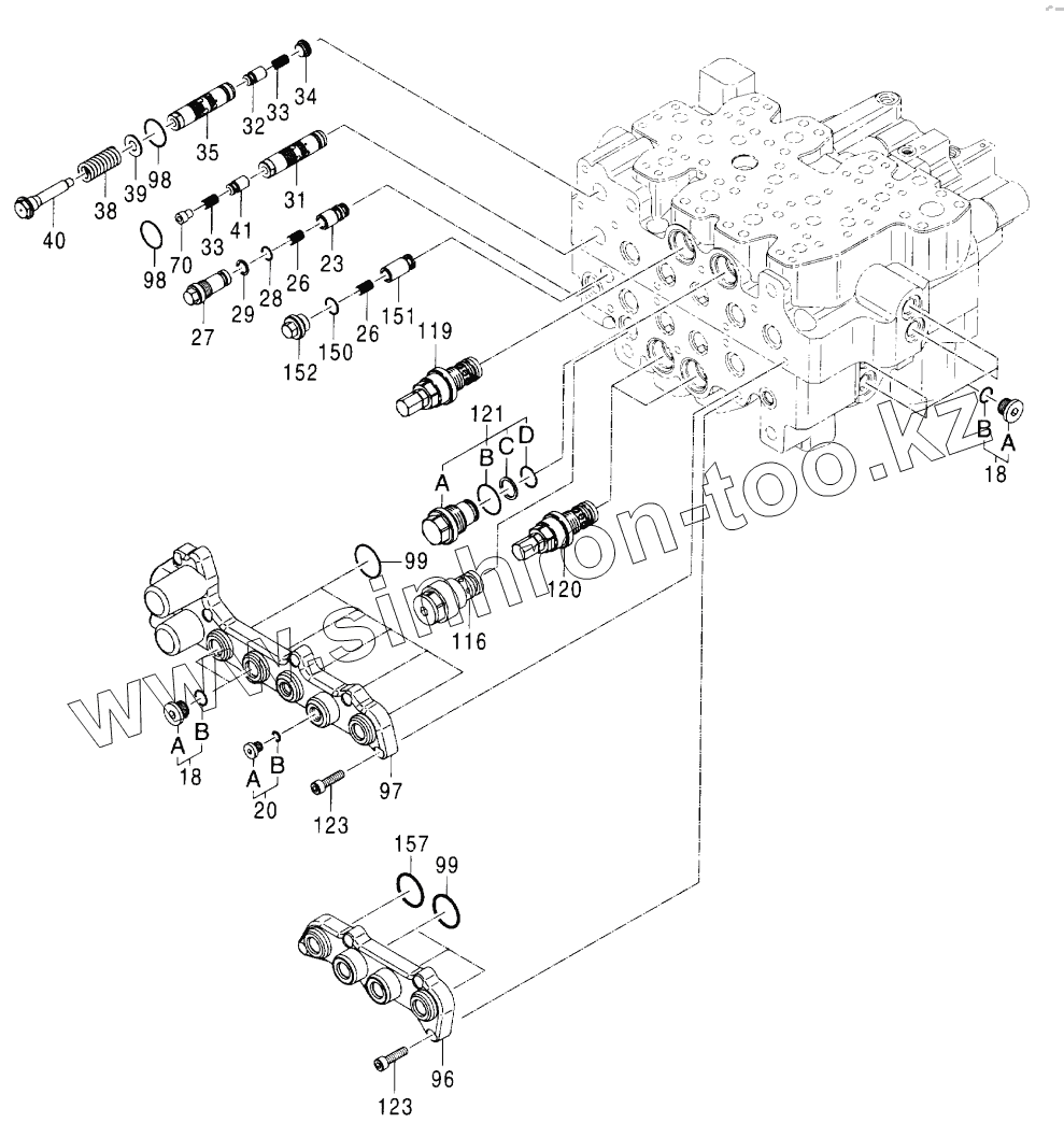 Каталог запасных частей к технике: Hitachi Компоненты ZX-160W. VALVE, CONTROL (3)