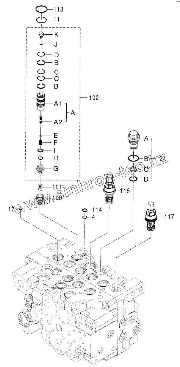Каталог запасных частей к технике: Hitachi Компоненты ZX-160W. VALVE, CONTROL (5)