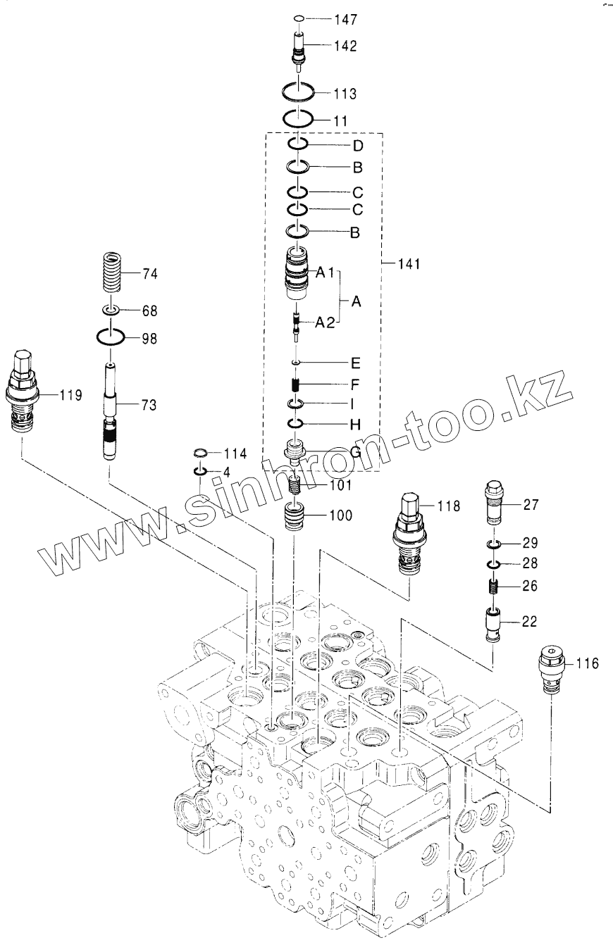 Каталог запасных частей к технике: Hitachi Компоненты ZX-160W. VALVE, CONTROL (7)