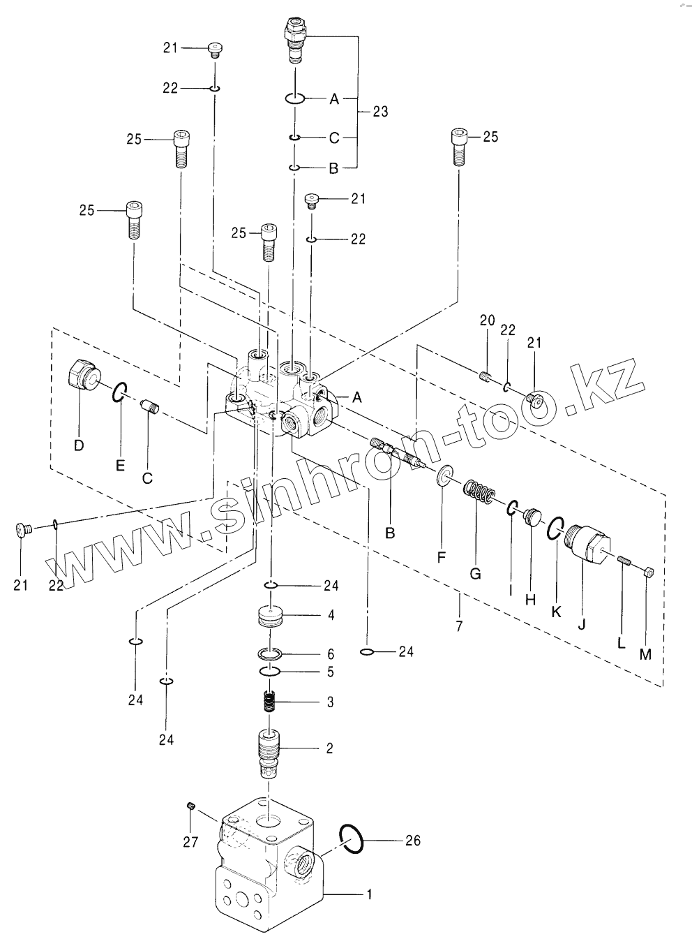 Каталог запасных частей к технике: Hitachi Компоненты ZX-160W. VALVE, HOLDING (L) (BOOM) (MONO BOOM)