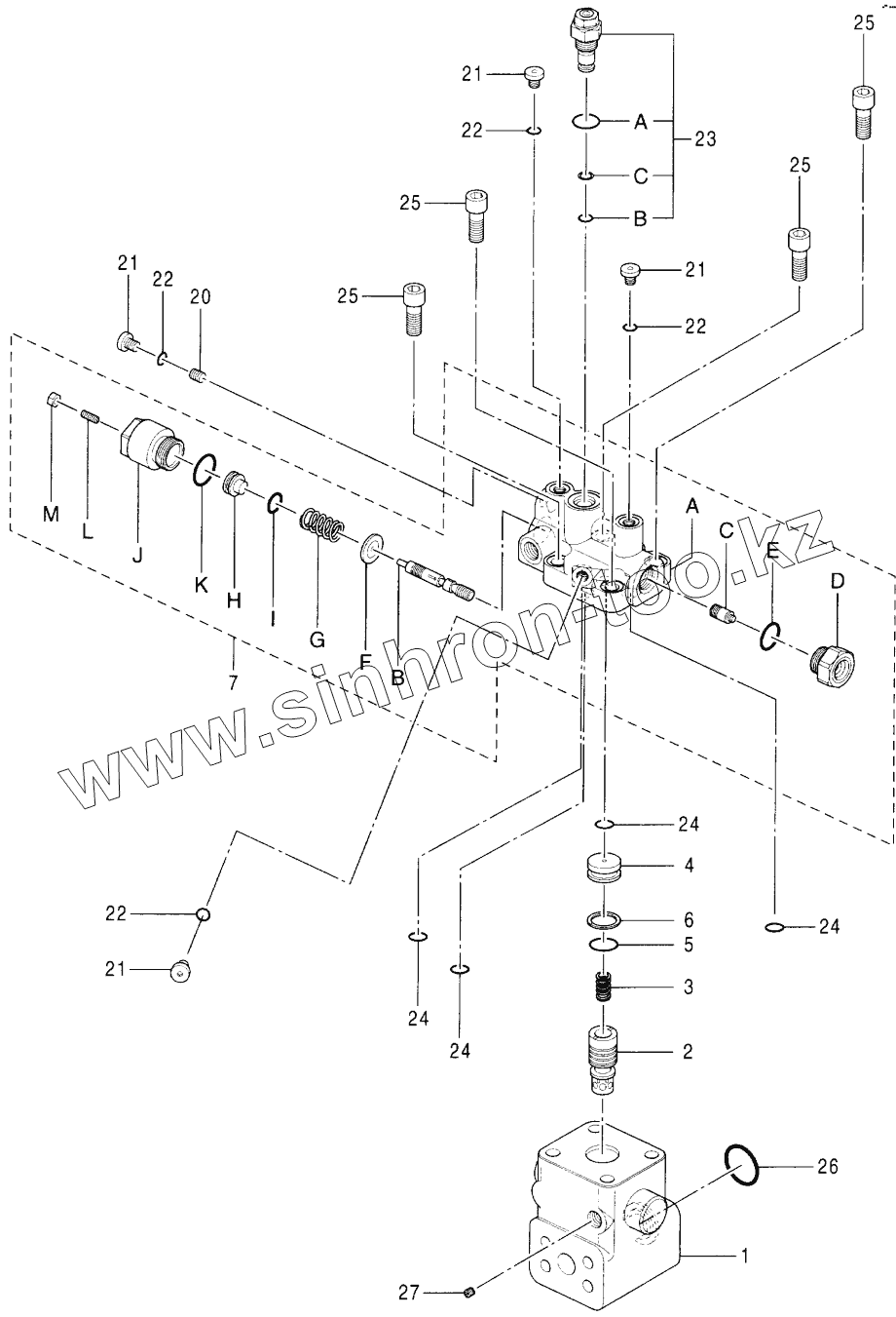 Каталог запасных частей к технике: Hitachi Компоненты ZX-160W. VALVE, HOLDING (POSITIONING) (2P-B00M)