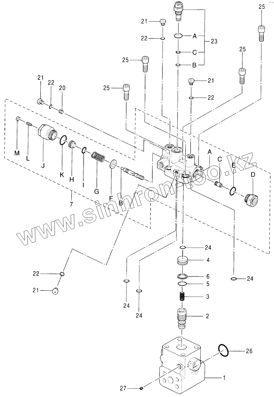 Каталог запасных частей к технике: Hitachi Компоненты ZX-160W. VALVE, HOLDING (R) (BOOM) (MONO BOOM)