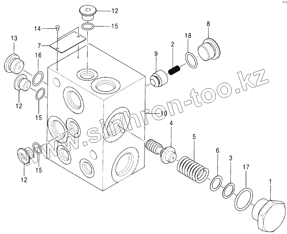 Каталог запасных частей к технике: Hitachi Компоненты ZX-160W. VALVE, RELIEF
