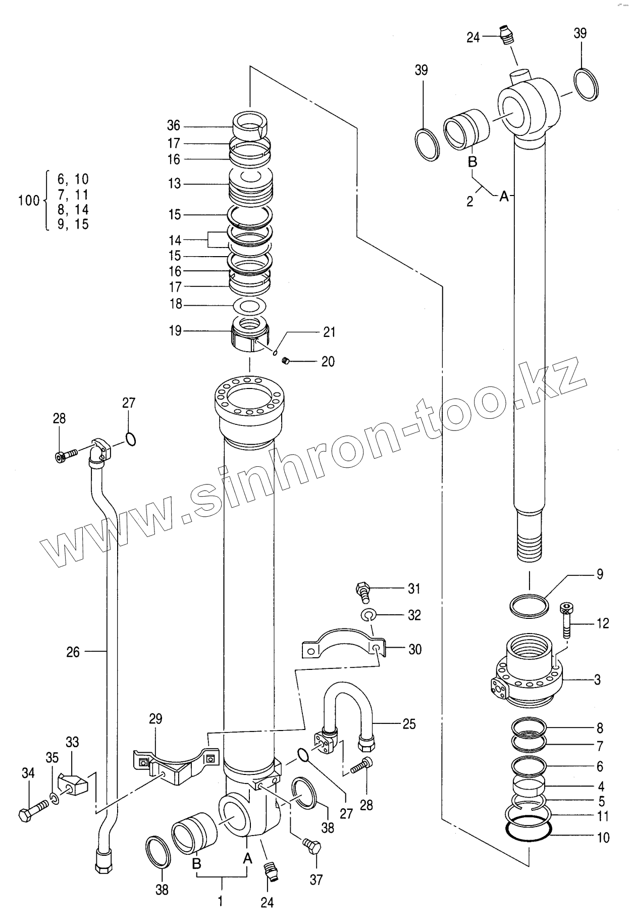 Каталог запасных частей к технике: Hitachi Компоненты ZX-200. CYL., BUCKET (RIVER MAINTENANCE)