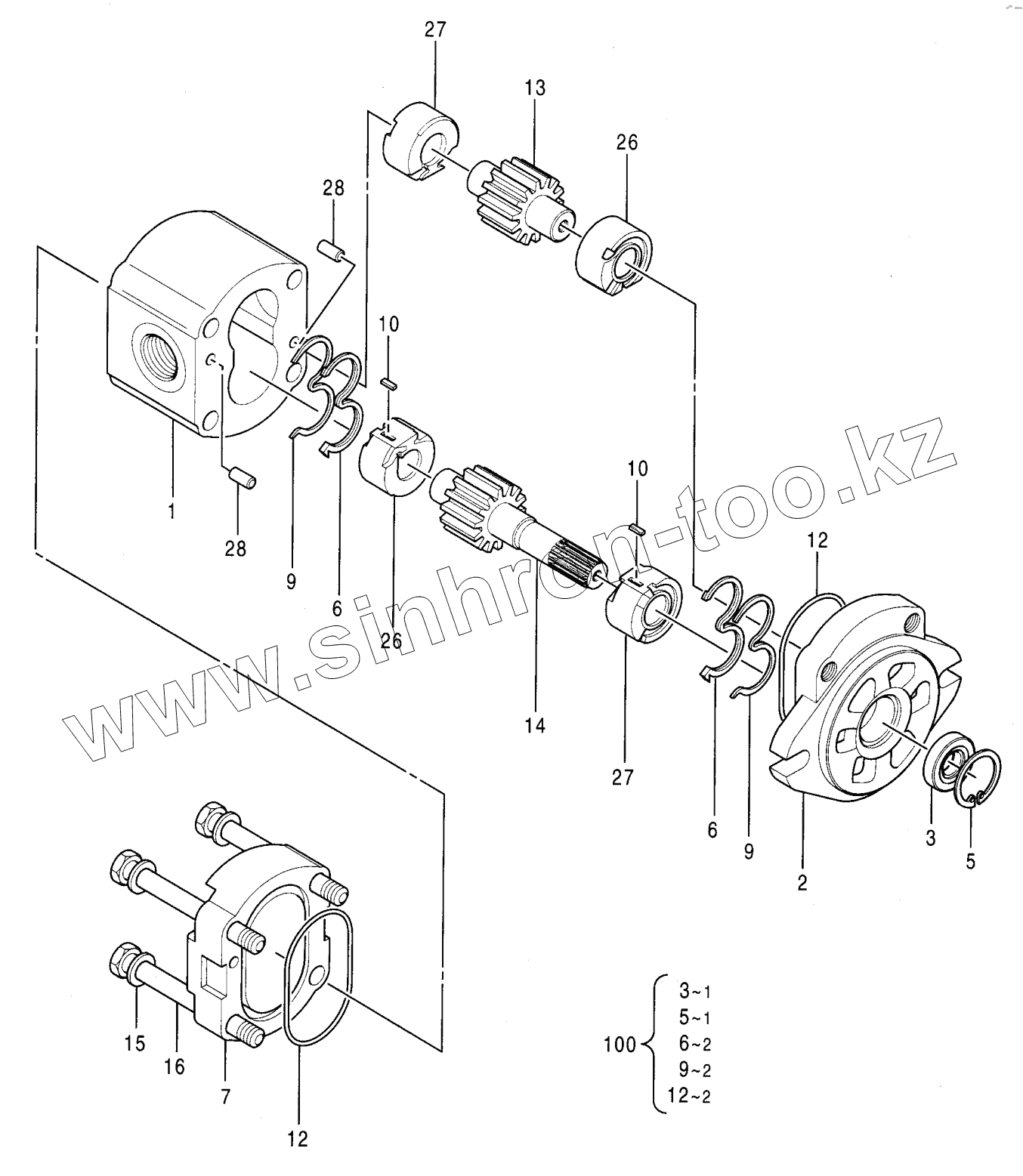 Каталог запасных частей к технике: Hitachi Компоненты ZX-200. PUMP, GEAR <200, H, K>