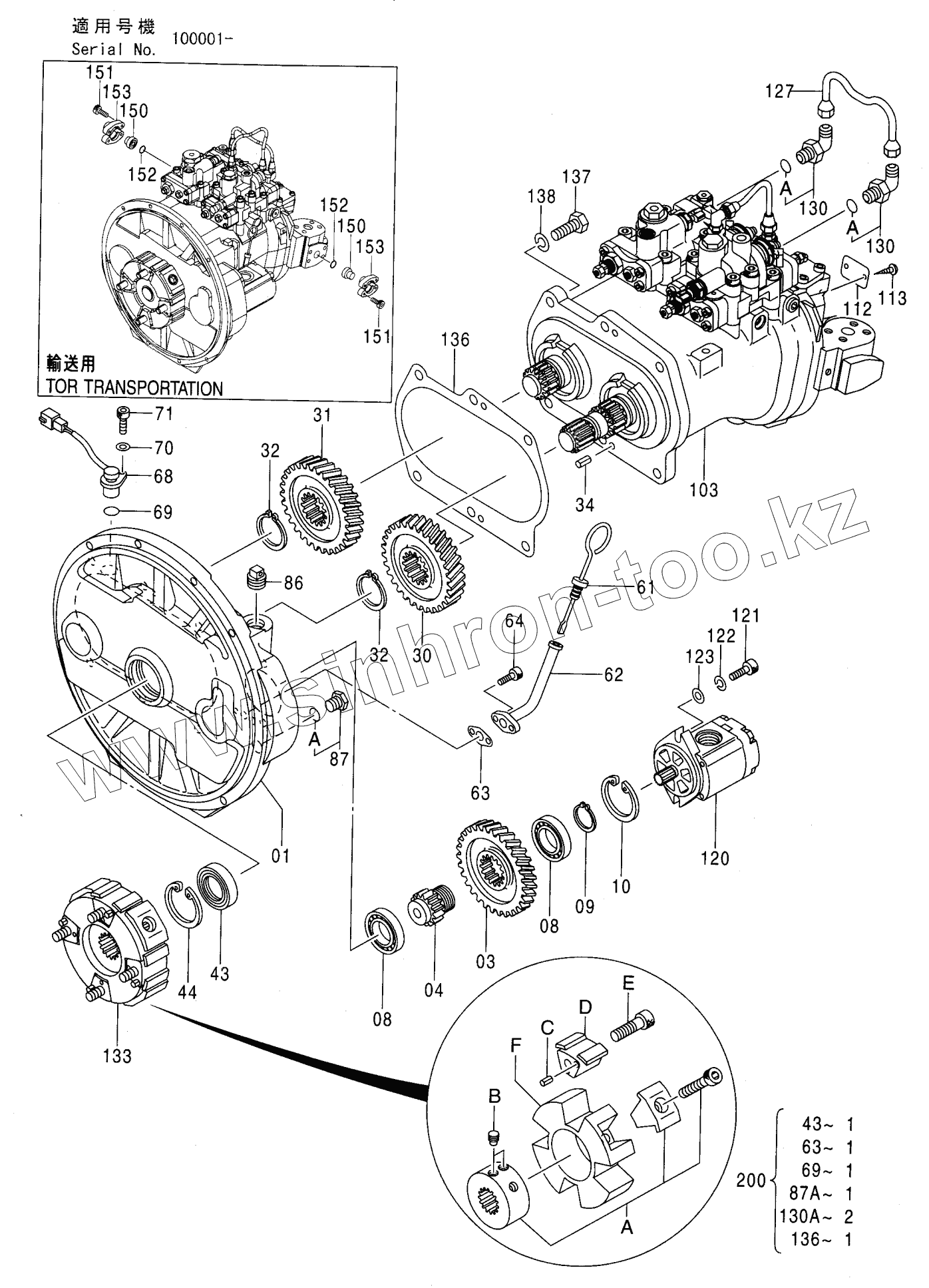 Каталог запасных частей к технике: Hitachi Компоненты ZX-200. PUMP DEVICE <E>