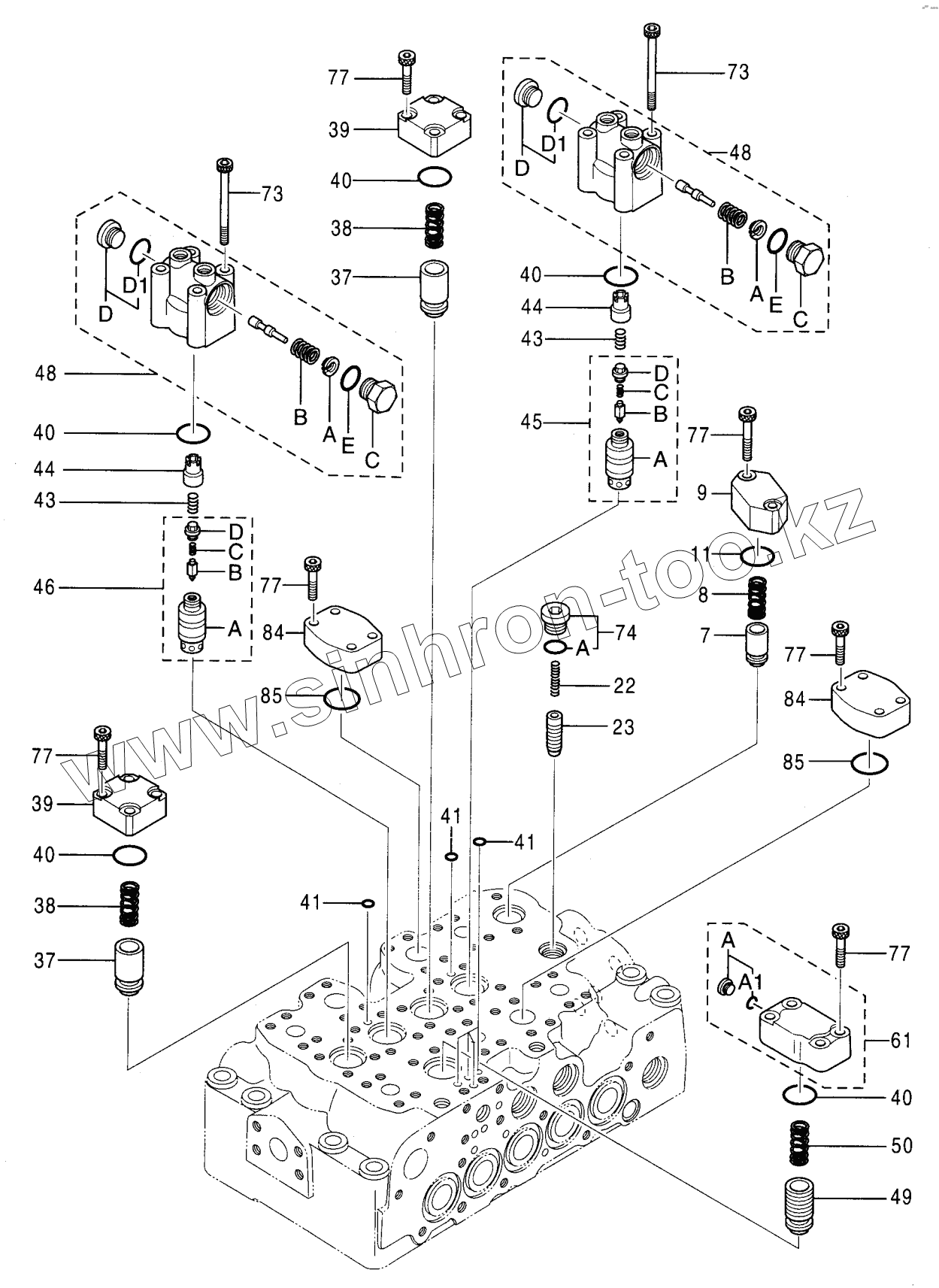 Каталог запасных частей к технике: Hitachi Компоненты ZX-200. VALVE, CONTROL (1/5)