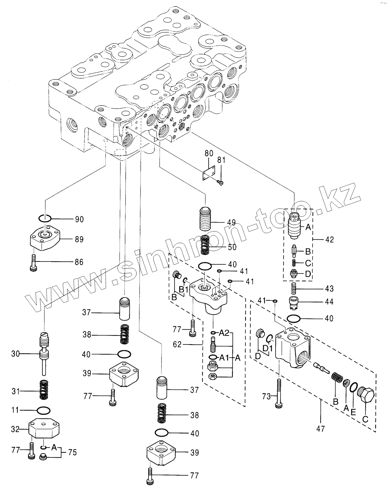 Каталог запасных частей к технике: Hitachi Компоненты ZX-200. VALVE, CONTROL (2/5)