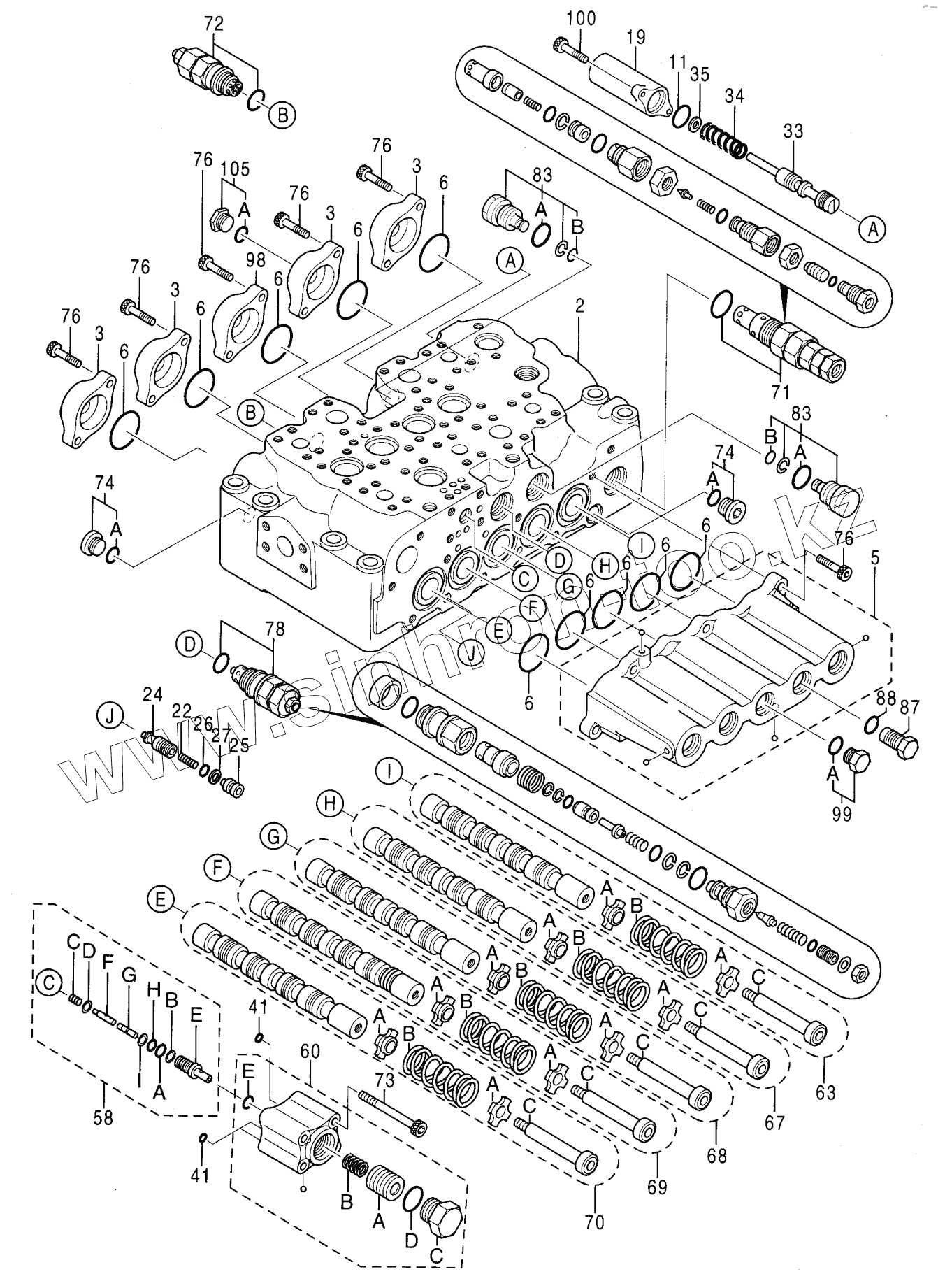Каталог запасных частей к технике: Hitachi Компоненты ZX-200. VALVE, CONTROL (3/5)
