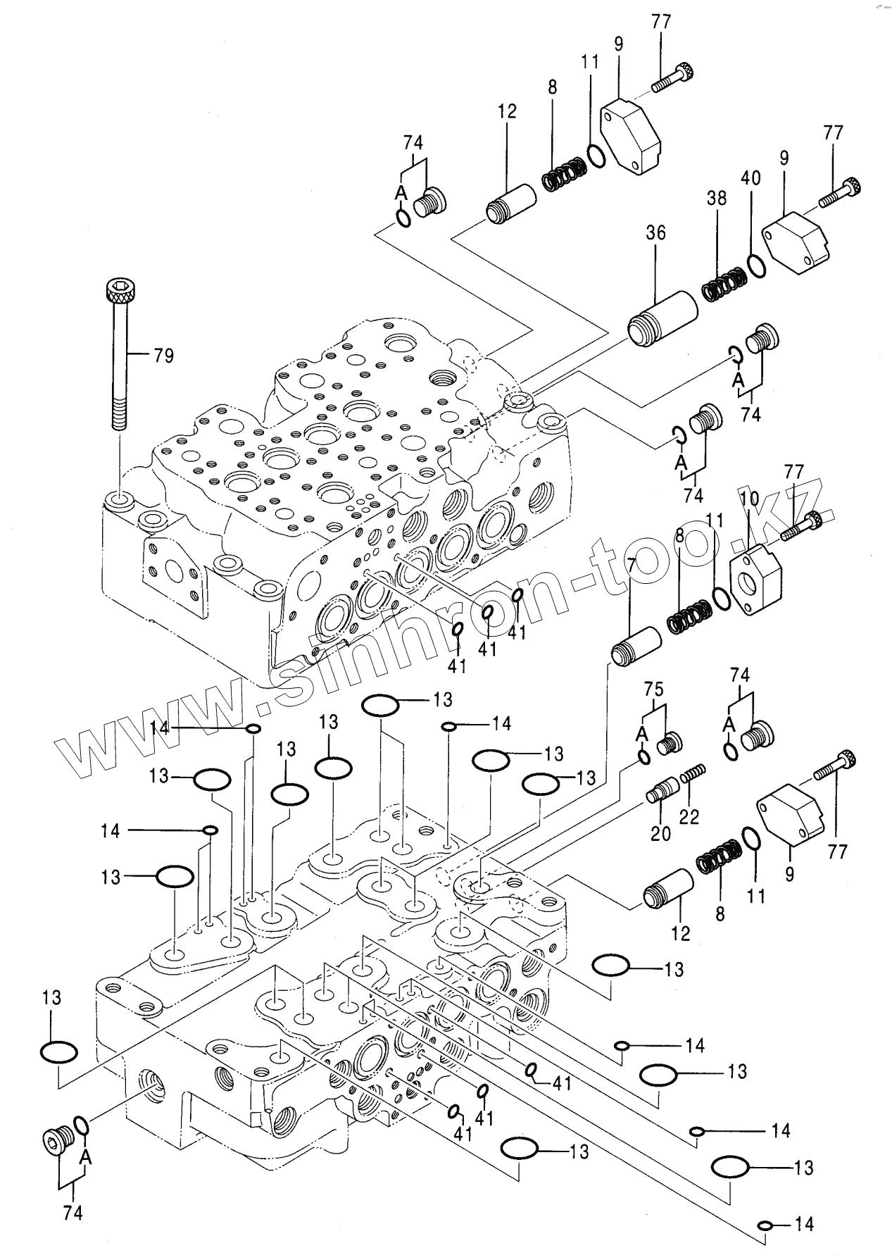 Каталог запасных частей к технике: Hitachi Компоненты ZX-200. VALVE, CONTROL (5/5)