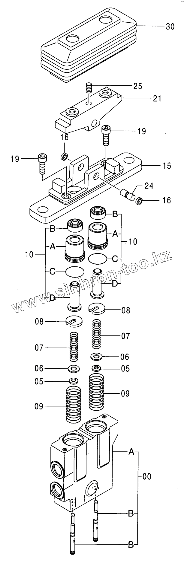 Каталог запасных частей к технике: Hitachi Компоненты ZX-200. VALVE, PILOT