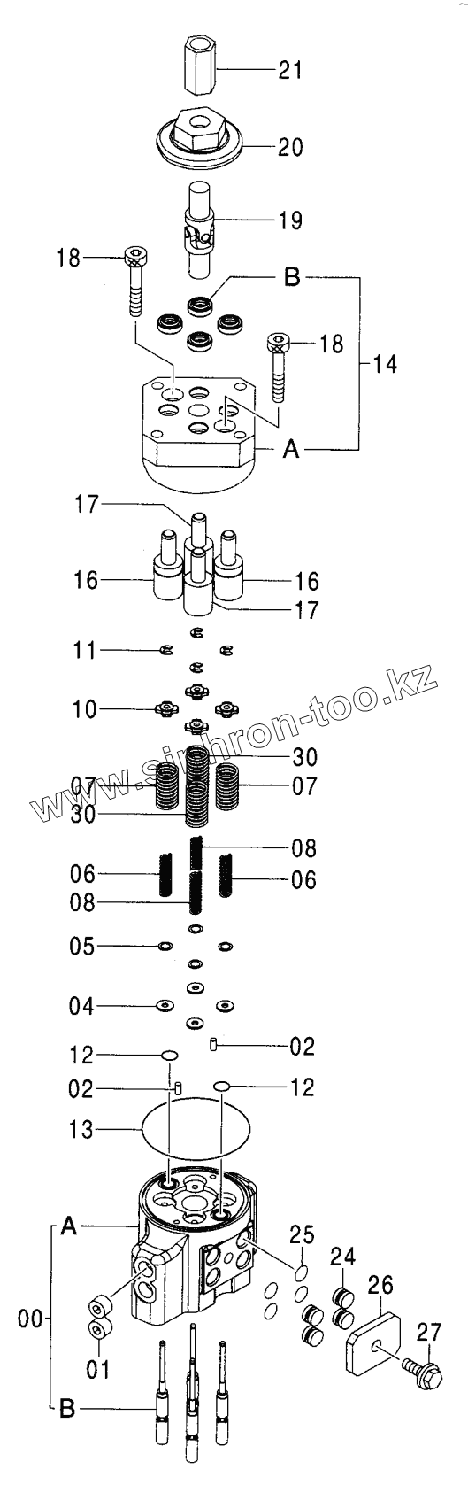 Каталог запасных частей к технике: Hitachi Компоненты ZX-200. VALVE, PILOT (FRONT & SWING)