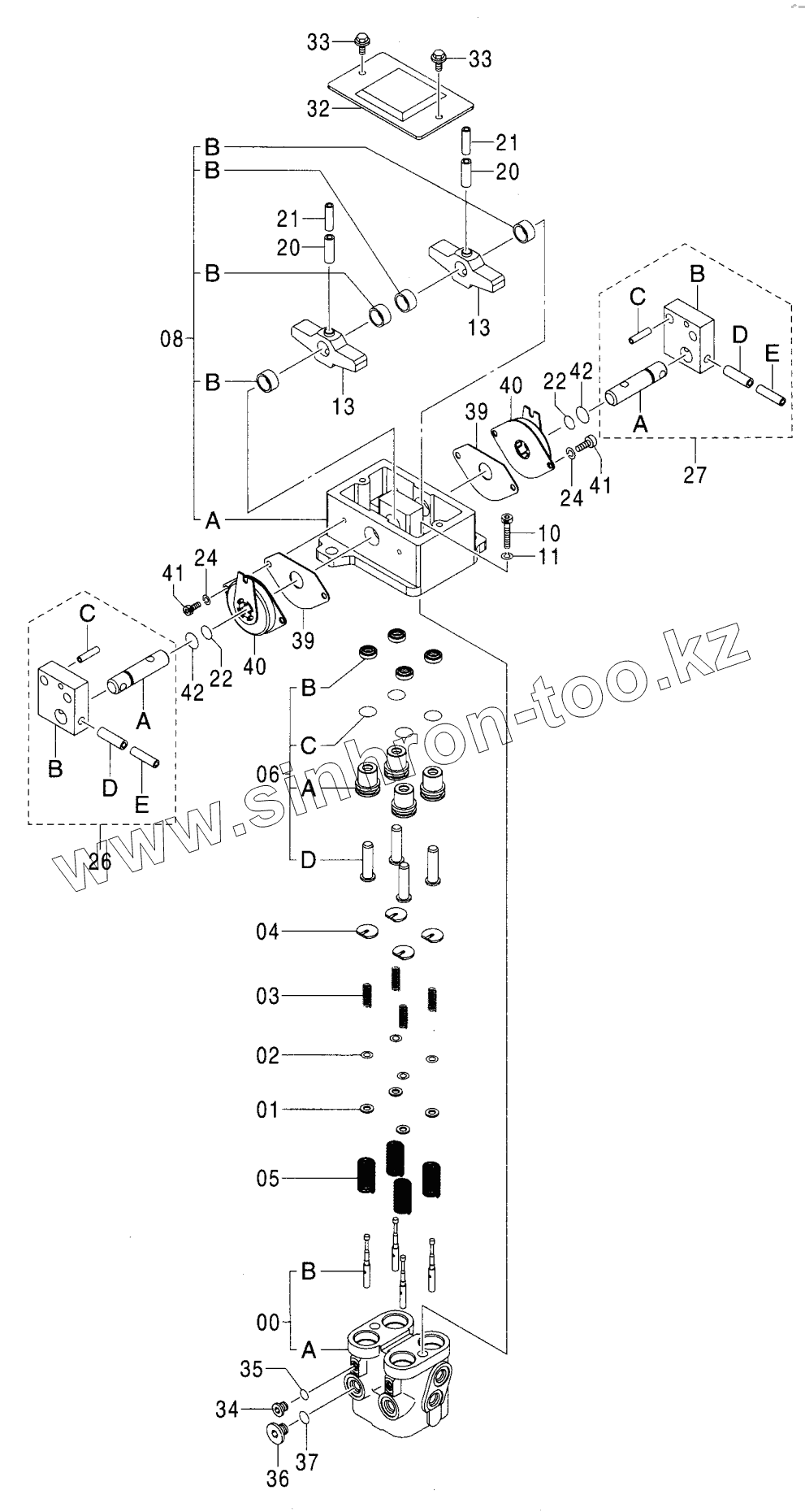 Каталог запасных частей к технике: Hitachi Компоненты ZX-200. VALVE, PILOT (TRAVEL)