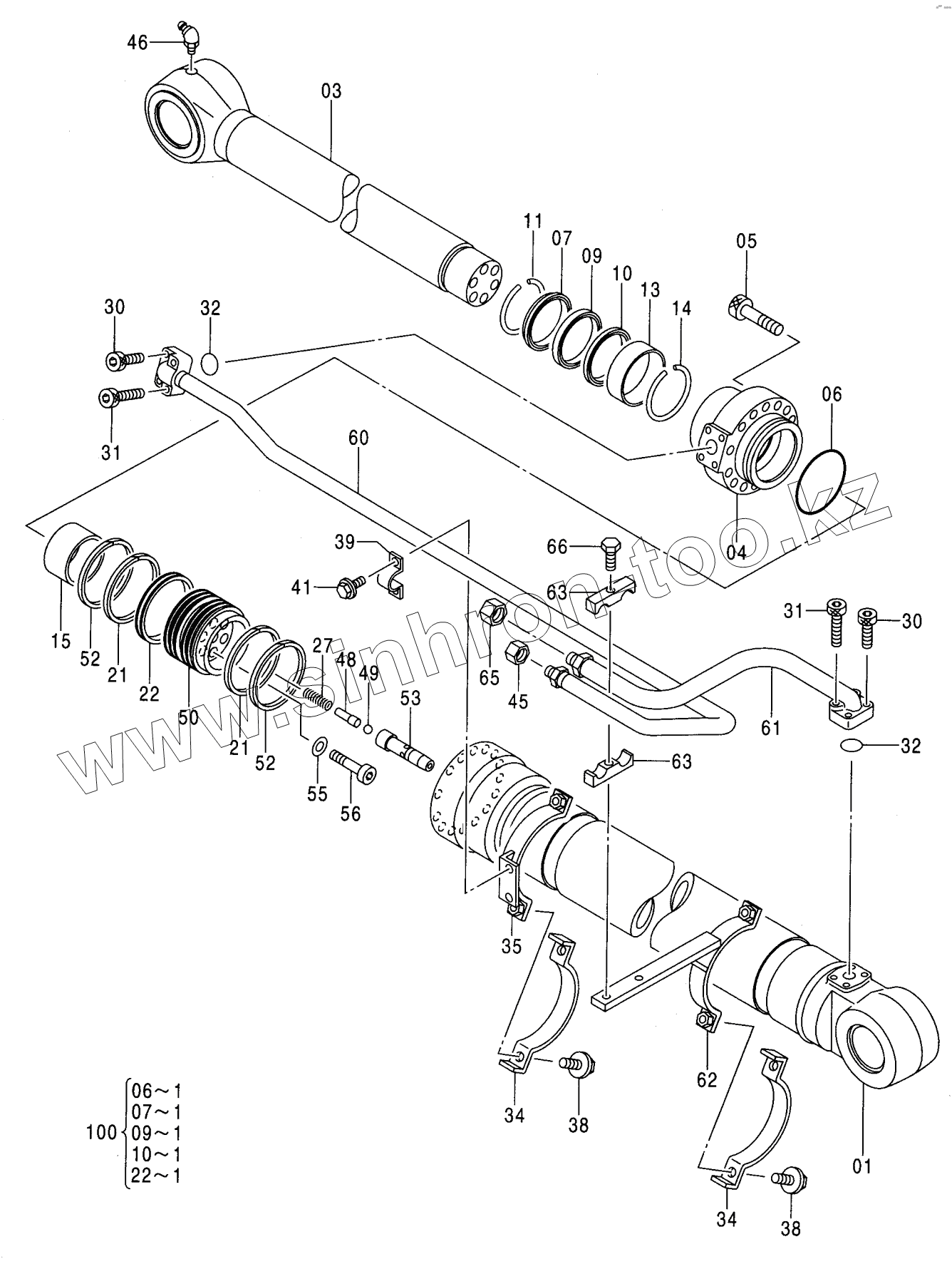 Каталог запасных частей к технике: Hitachi Компоненты ZX-230. CYL., ARM (2P-B00M)