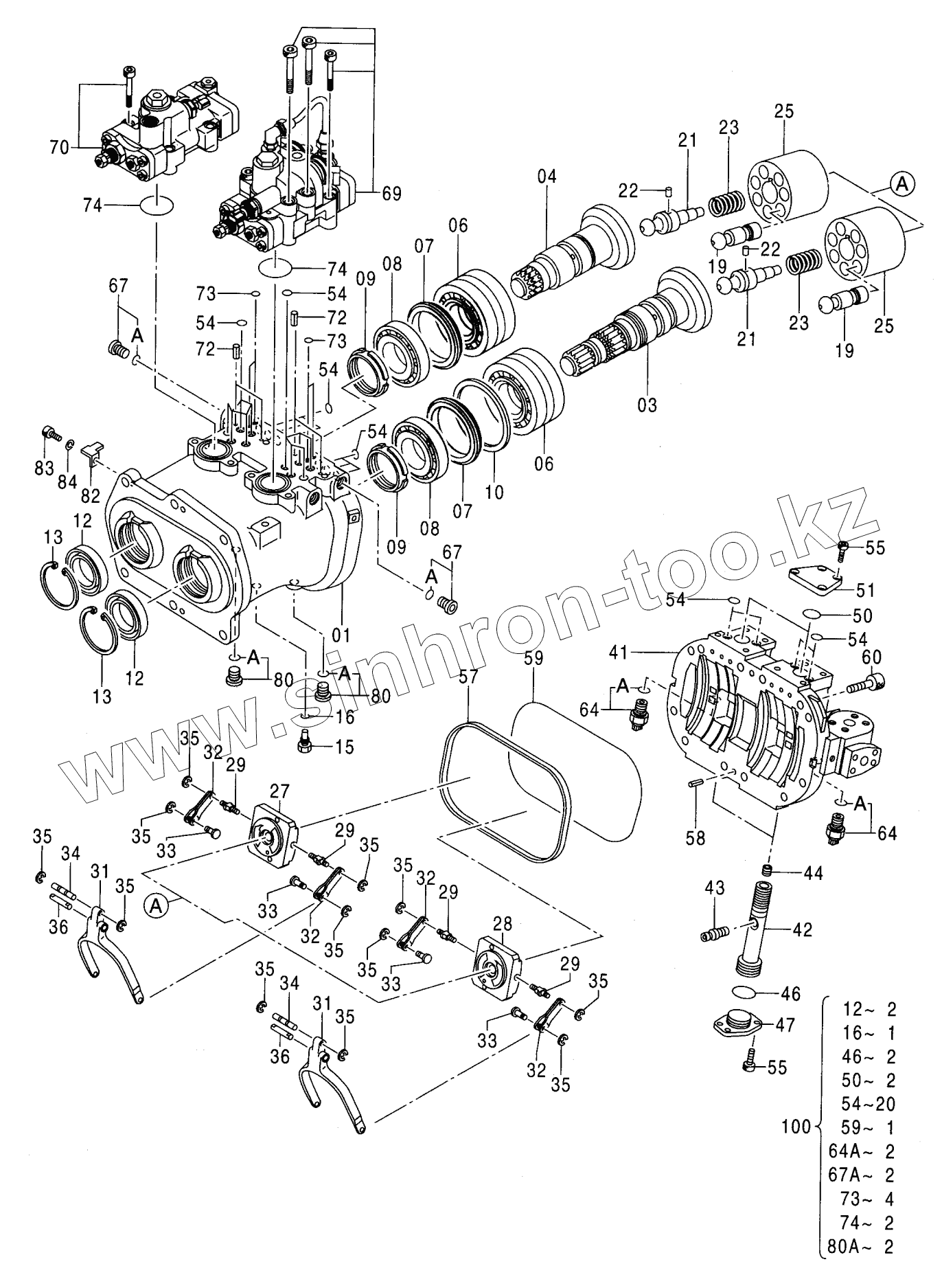 Каталог запасных частей к технике: Hitachi Компоненты ZX-230. PUMP, UNIT