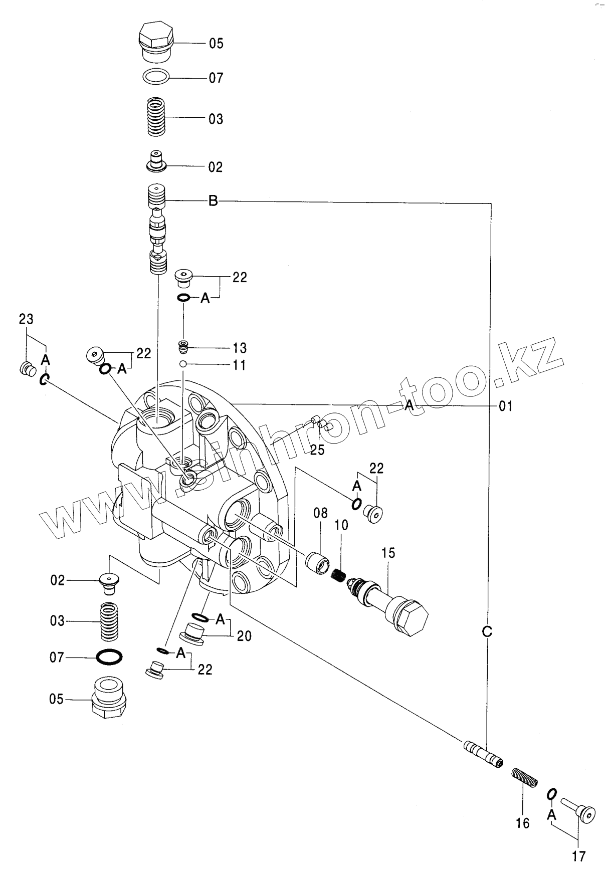 Каталог запасных частей к технике: Hitachi Компоненты ZX-230. VALVE, BRAKE