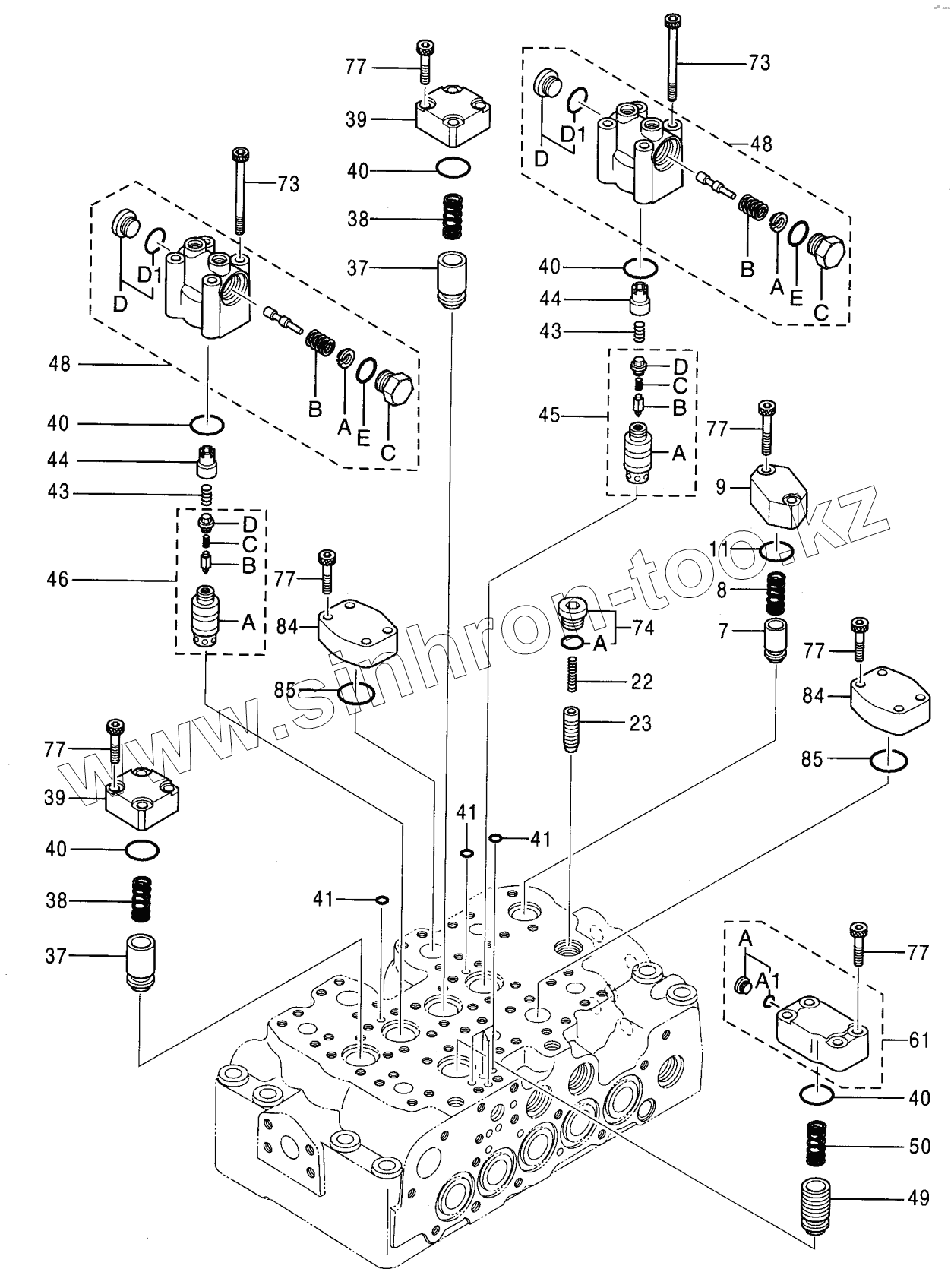 Каталог запасных частей к технике: Hitachi Компоненты ZX-230. VALVE, CONTROL (1/5)