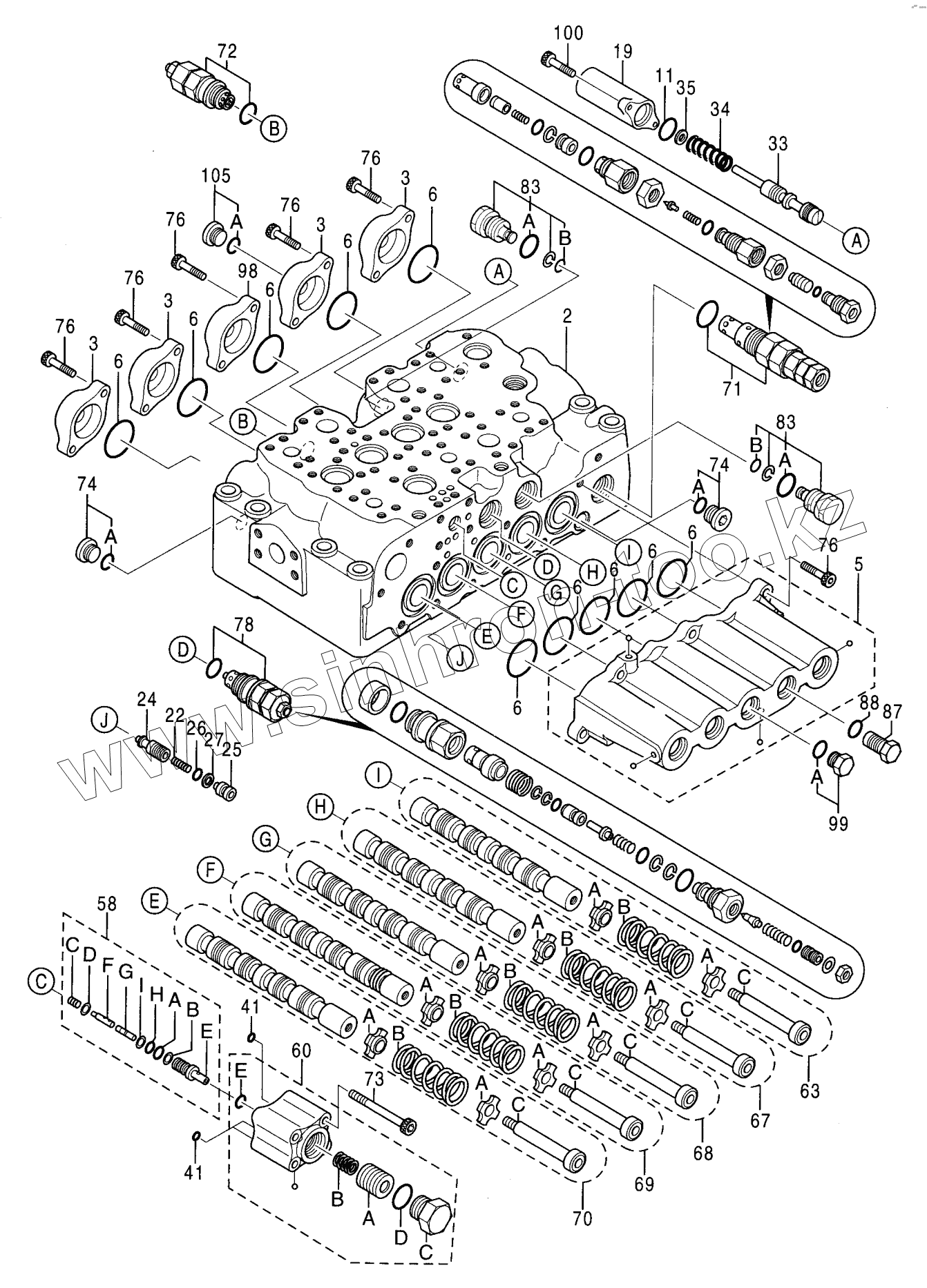 Каталог запасных частей к технике: Hitachi Компоненты ZX-230. VALVE, CONTROL (3/5)