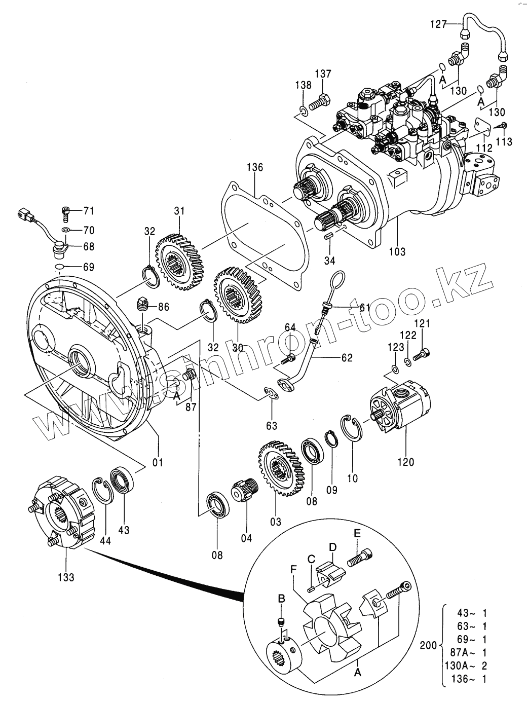 Каталог запасных частей к технике: Hitachi Компоненты ZX-270. PUMP, DEVICE